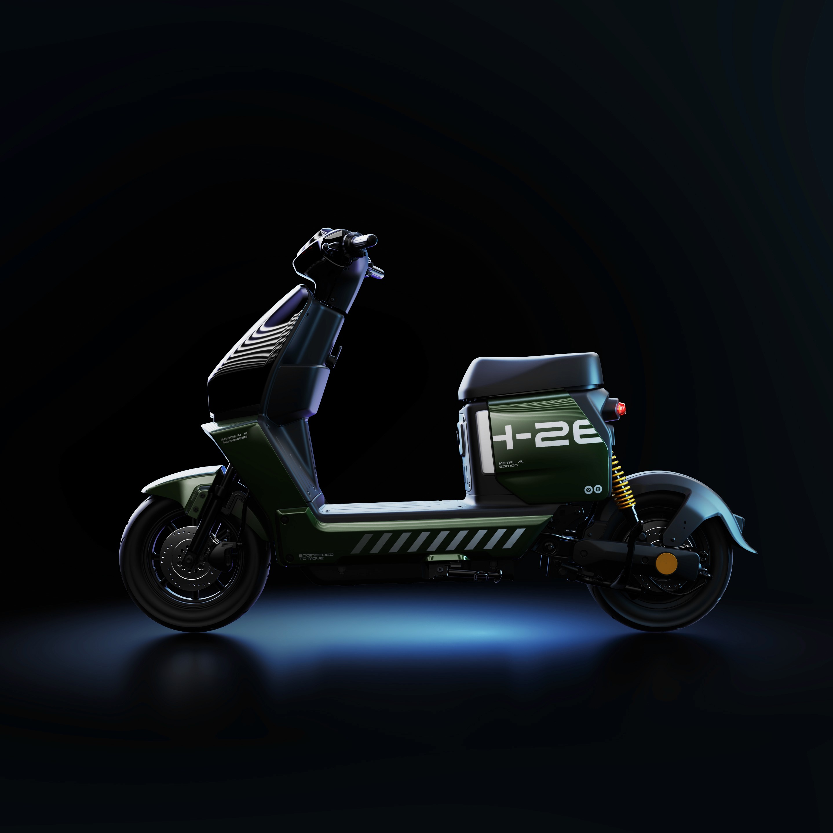 Aluminum alloy shell, all-new urban sports design. High-capacity battery, spacious storage space, clear digital instrument panel, personalized lights